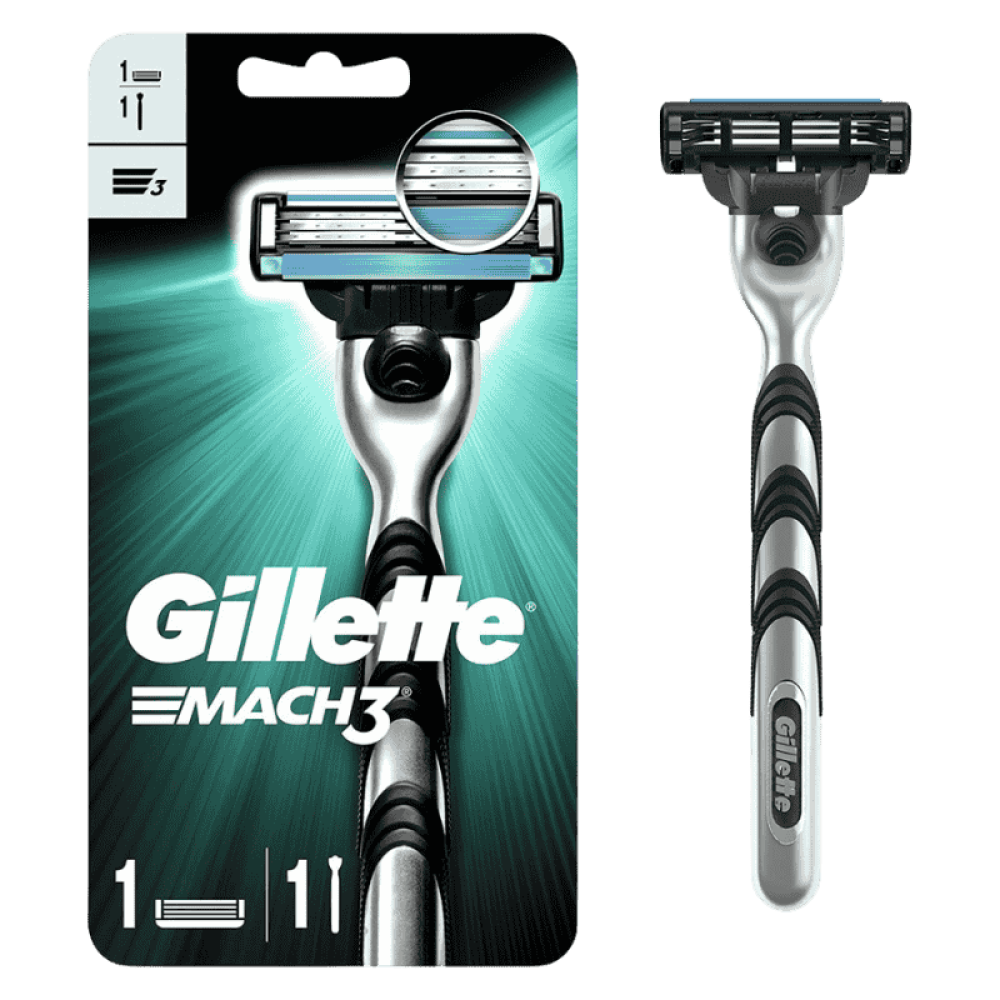 تأتي الماكينة مع مقبض مريح وعصري وشفرتين احتياطيتين من نوع ماك 3 المعروفة بحدّتها وثباتها.