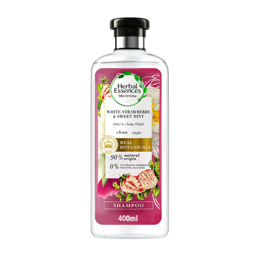 هيربال إيسنسز بيو:رينيو شامبو بالفراولة البيضاء والنعناع الحلو - 400 مل هو شامبو طبيعي ومنعش مصمم لتنظيف الشعر بلطف وفعالية بفضل تركيبته المدعّمة بمستخلصات الفراولة البيضاء والنعناع الحلو. يعمل على تنقية فروة الرأس من الشوائب والدهون الزائدة دون أن يسبب جفافًا، كما يمنح الشعر إحساسًا فوريًا بالانتعاش والنظافة. تركيبته النباتية المعززة بتقنية Bio:Renew تدعم صحة فروة الرأس وتحمي الشعر من الأضرار البيئية. الشامبو خالٍ من الكبريتات والبارابين، ومناسب للاستخدام اليومي ولكل أنواع الشعر.