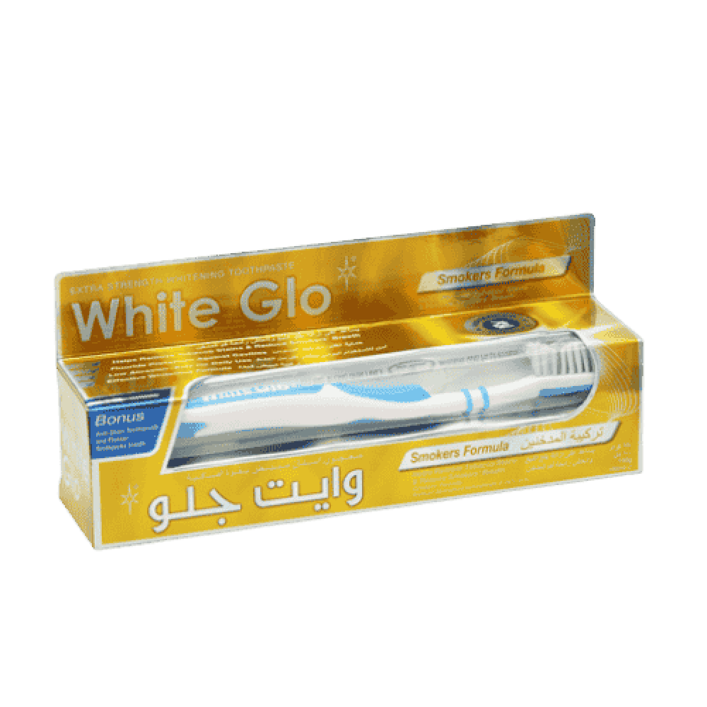 استعيدي إشراقة ابتسامتك مع معجون الأسنان بتركيبة مبيِّضة لأسنان المدخنين من وايت جلو، المصمم خصيصًا لمكافحة آثار النيكوتين والبقع الداكنة الناتجة عن التدخين والقهوة والشاي.