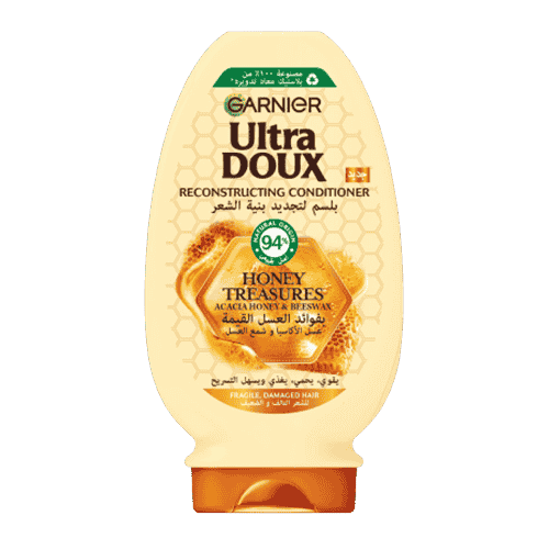 - بعد غسل الشعر بالشامبو، طبقي كمية مناسبة من بلسم غارنييه الترا دو مرمم بالعسل على الشعر الرطب