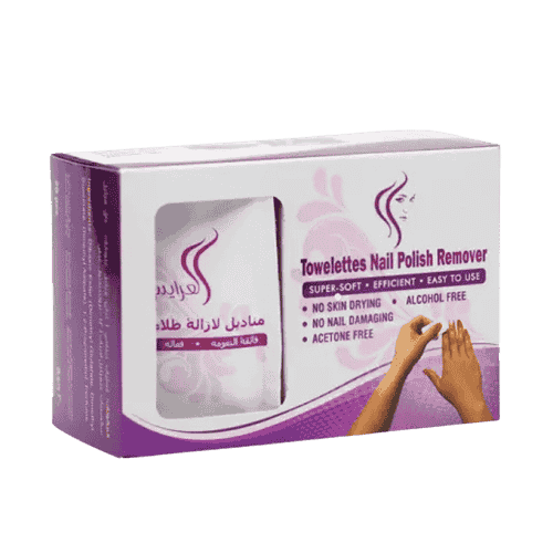 مناديل إزالة طلاء الأظافر من العرايس توفر لكِ طريقة عملية وسريعة لإزالة طلاء الأظافر دون الحاجة إلى استخدام الأسيتون أو القطن. تتميز بتركيبة لطيفة وخالية من المواد القاسية، ما يجعلها مثالية للعناية بأظافرك دون أن تتسبب في جفافها أو تهيج الجلد المحيط بها.