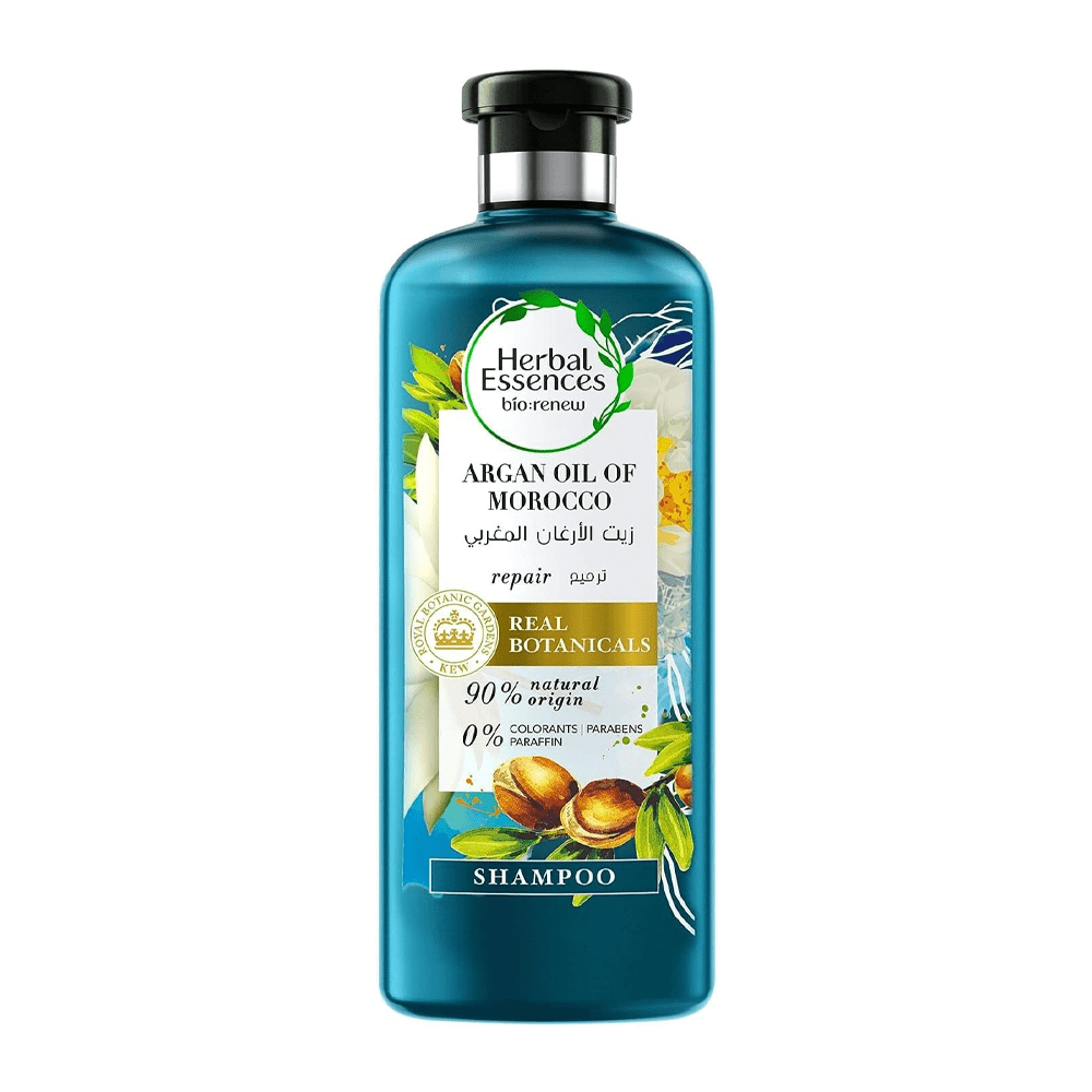 هيربال إيسنسز بيو رينيو شامبو ترميم بزيت الأرغان المغربي - 400 مل هو شامبو طبيعي بتركيبة فعالة لإصلاح الشعر التالف والمتقصف. يحتوي على زيت الأرغان النقي المستخرج من المغرب، الغني بمضادات الأكسدة والفيتامينات التي تغذي الشعر بعمق وتساعد على ترميم الألياف التالفة. بفضل تقنية Bio:Renew، يعيد التوازن الحيوي لفروة الرأس ويمنحك شعرًا صحيًا ولامعًا من أول استخدام. الشامبو خالٍ من الكبريتات والبارابين، آمن للاستخدام اليومي ومناسب لجميع أنواع الشعر، خصوصًا الشعر الجاف أو المعالج كيميائيًا.